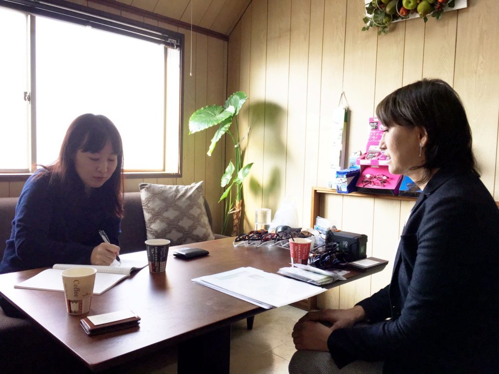 (左が記者の四方さん、右が加藤社長)